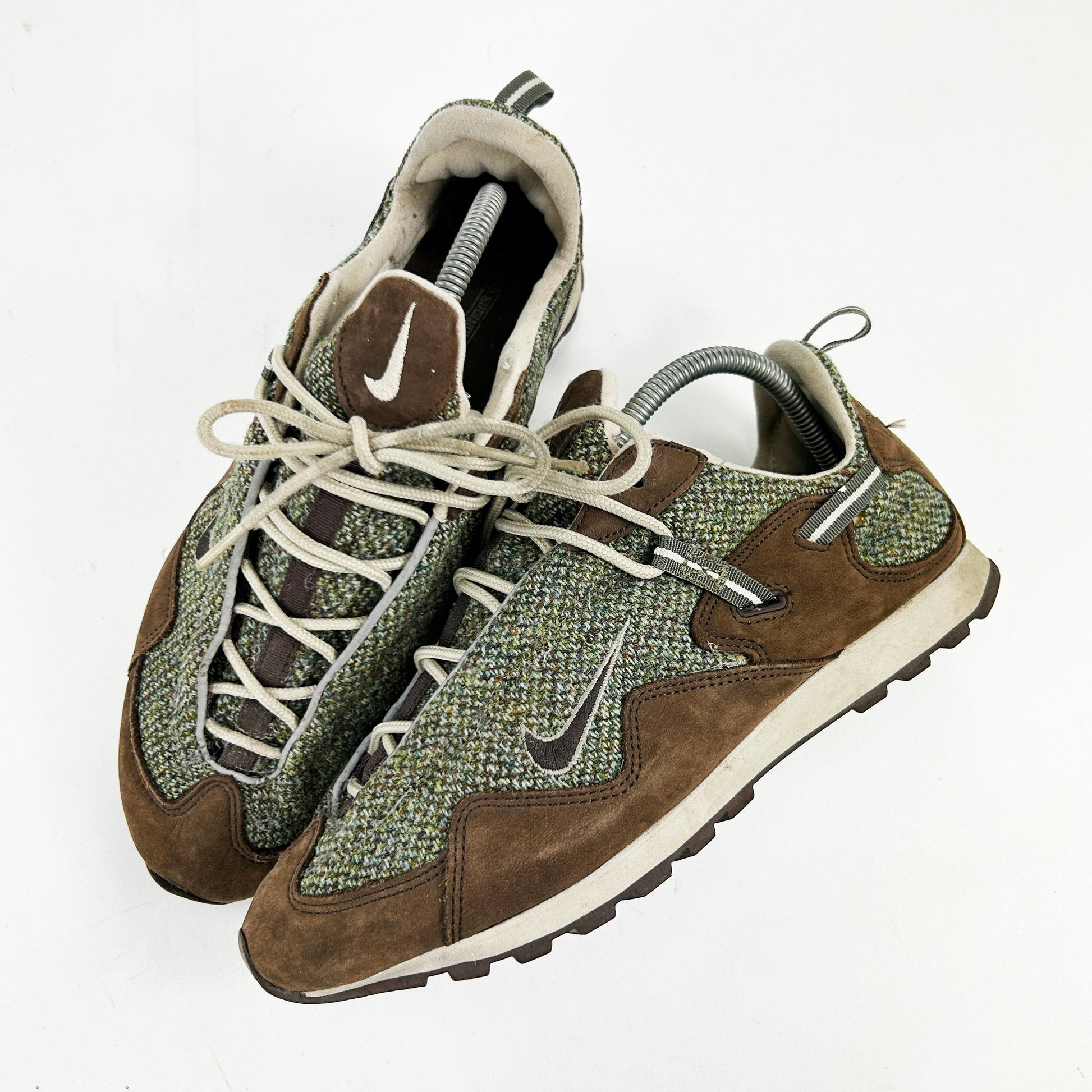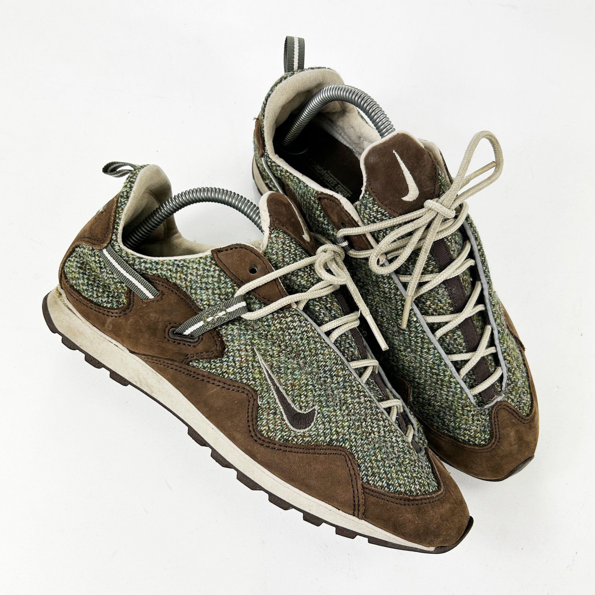 Dubbed the Pocketknife due to its versatility and its ability to be folded up, this practical all round walking shoe was an instant hit in Japan, quickly gaining a cult following and a wide variety of exclusive co.jp colourways. The Pocketknife was rightly voted one of the best ACG’s of all time by Complex in 2013. This pair from ‘04 was part of a pack in collaboration with Scottish wool mill Harris Tweed. It was the only time a Pocketknife was used in a collaboration. This pair remains in great condition bar one small rip on the tongue - unseen when worn. You will not find another pair in this size / condition. Fit small. See policies before purchase.