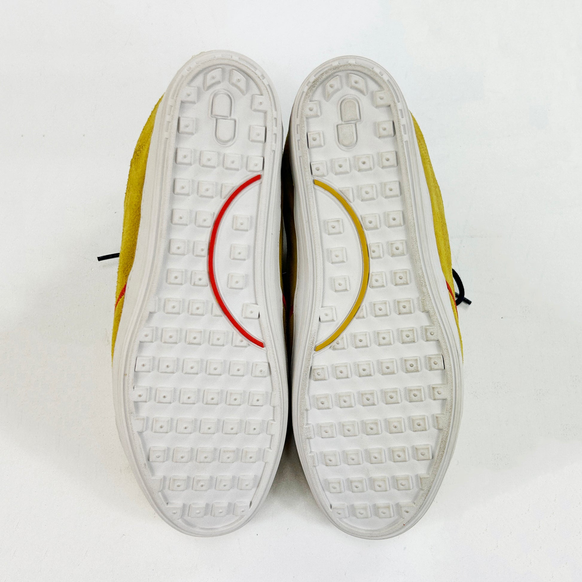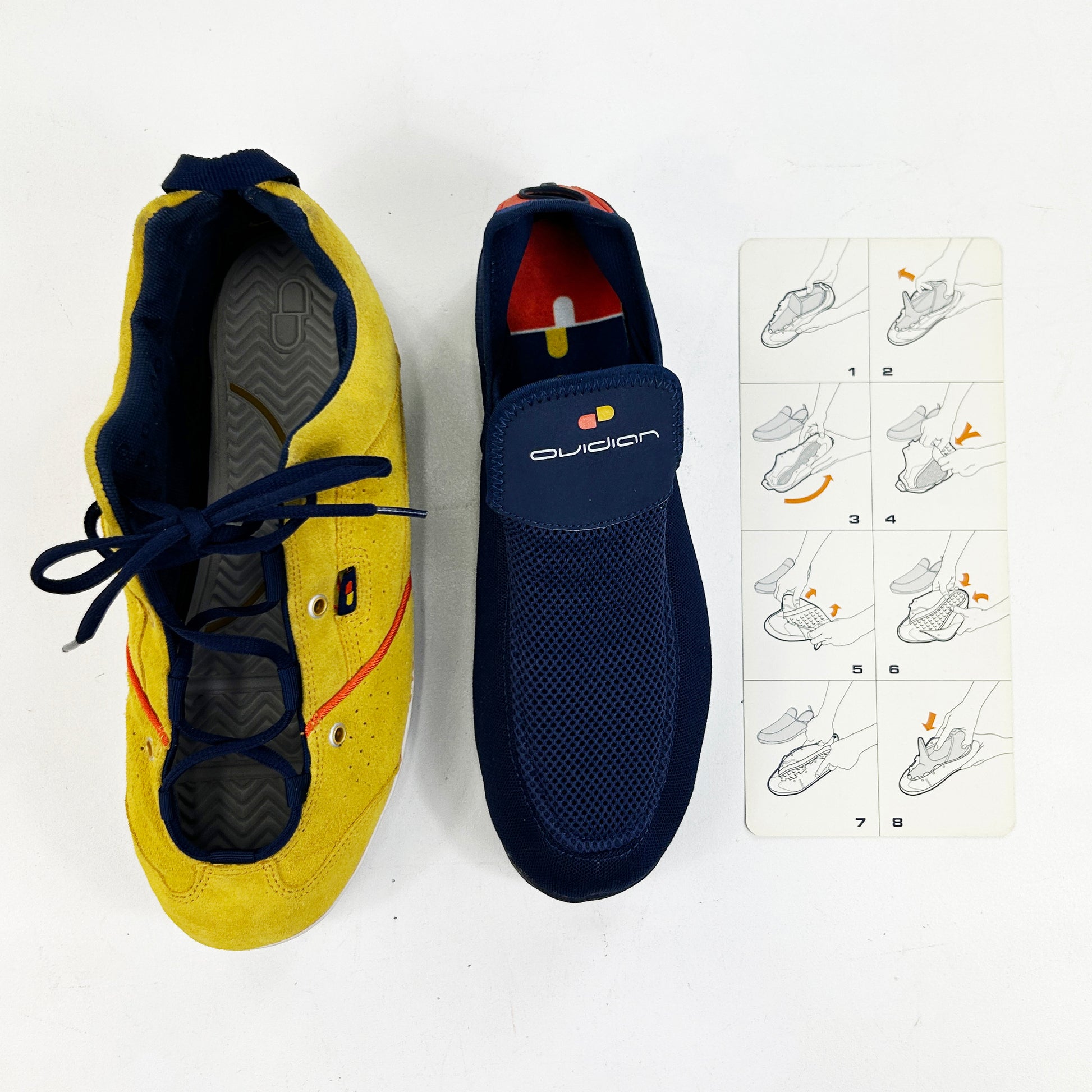 The Ovidian is without a doubt, one of the most experimental pieces of skateboard footwear design ever created. The definition of Ovidian reads: "relating to or characteristic of the Roman poet Ovid or his works." Ovid was a Roman poet, famous for his tales of metamorphosis - a very fitting name for the shoe that turns inside out, into a new pair of shoes. Each shoe has two main components, a reversible outer shell and a heavily padded slip on liner. Once you've skated/worn down one side of the outer shell, you simply turn them inside out and start afresh. Honestly, the most interesting thing in skateboarding footwear since the Ovidian is @village_pm! These are brand new with box and in immaculate condition - never even been turned inside out! Maybe one of the rarest shoes we've had up for grabs, especially in this condition. See policies before purchase.
