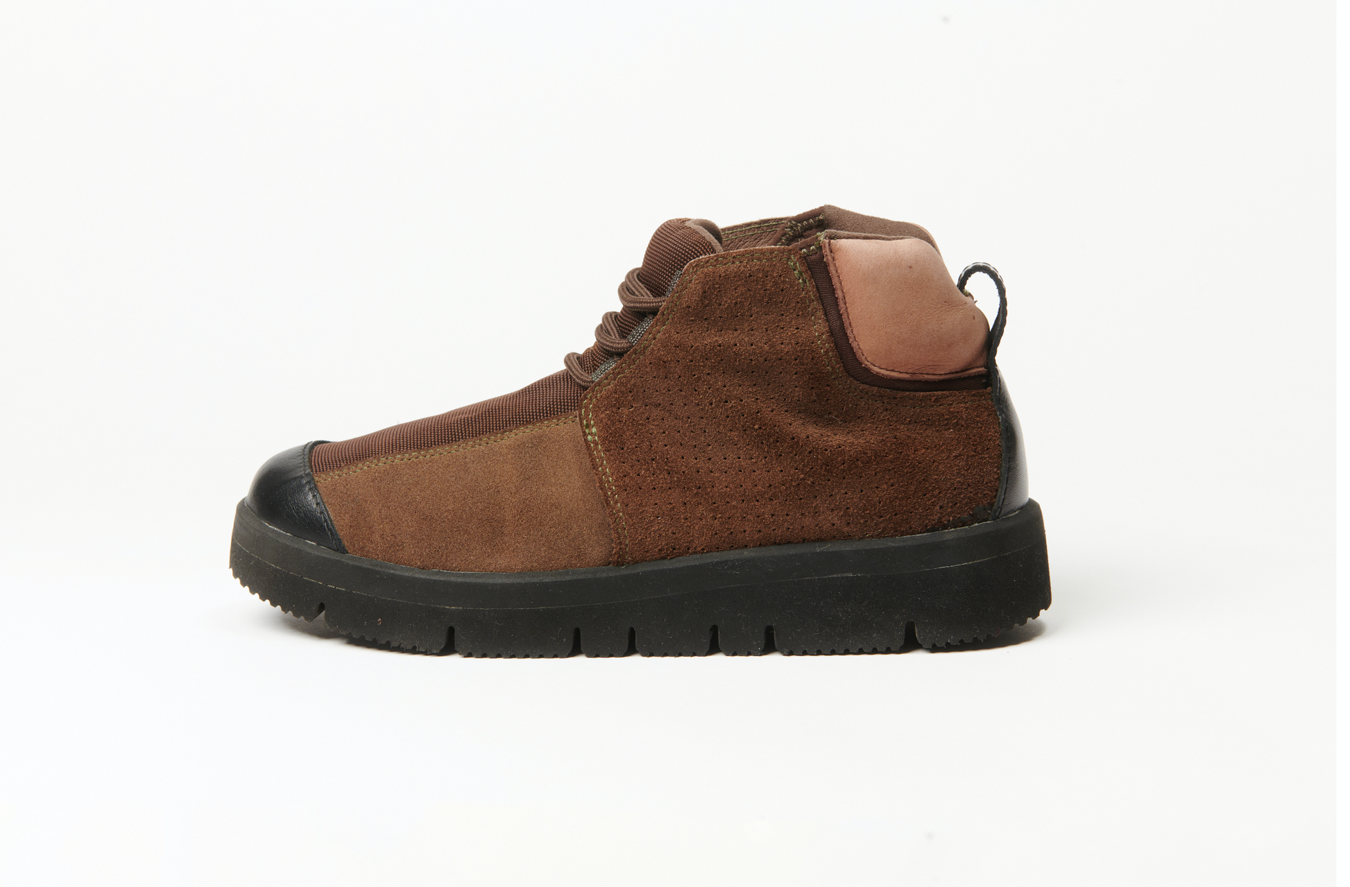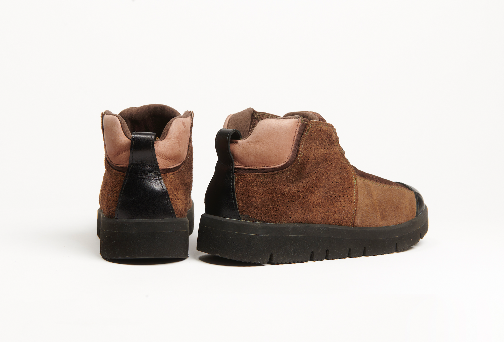 This model is one of many, many obscure silhouettes to come out of the Presto lineage in the early 2000s. The 'Ridge', which released in both mid and low iterations, is somewhat like a lifestyle oriented Presto Roam with its mid-top construction. One notable detail about the Ridge is that it is one of a handful of Presto models that doesn't feature any kind of 'cage'. Fairly adamant the Ridge was a Japan only release. The leftfield construction is terms of panelling and volumes really set this model apart from others out of the same era. This paired with high quality suede and perforated detailing makes for a truly impeccable example of footwear design. This pair has been reCONSTRUCTED by Samuel Falzone, with an added leather toecap, rebuilt heel pull, EVA welt and a Vibram outsole.