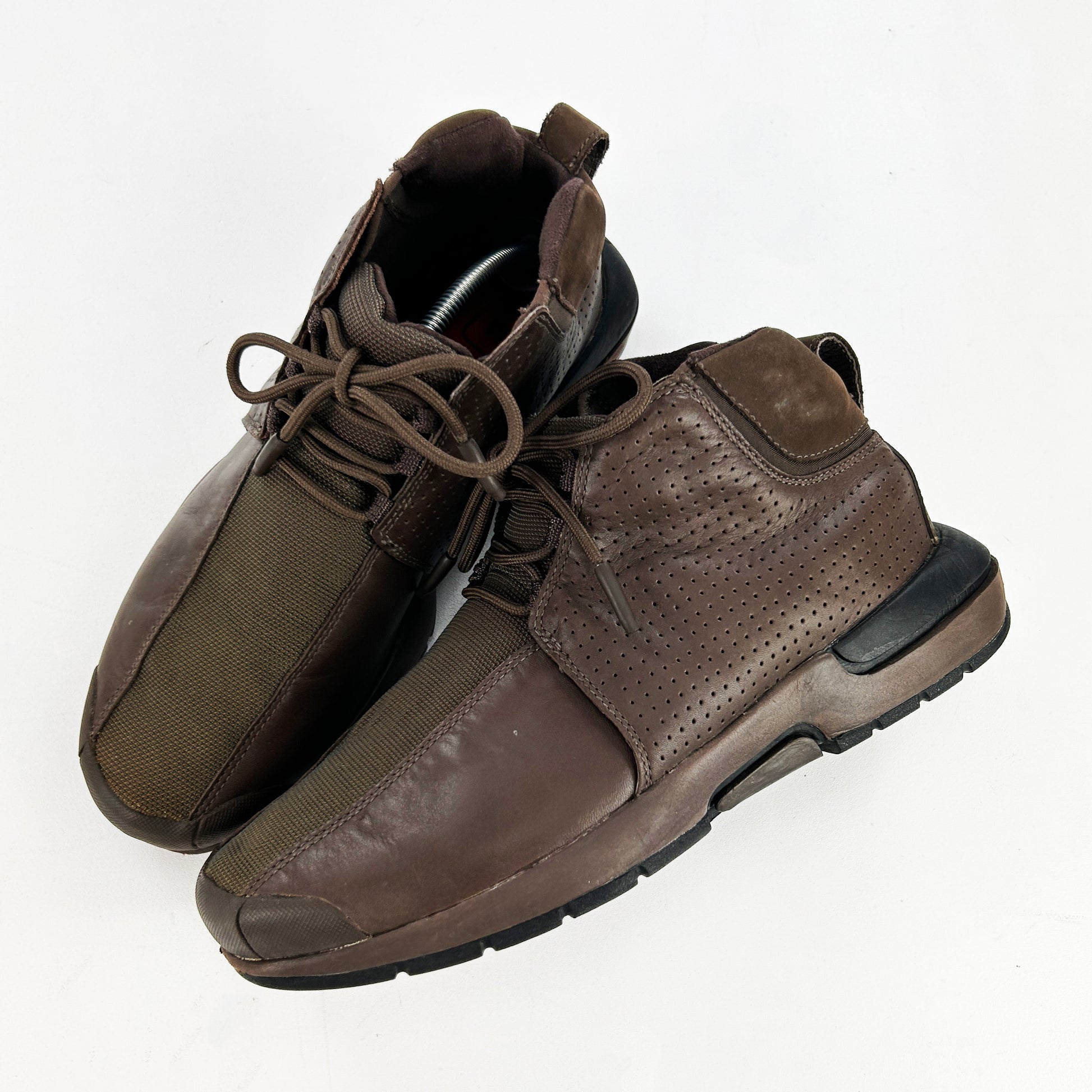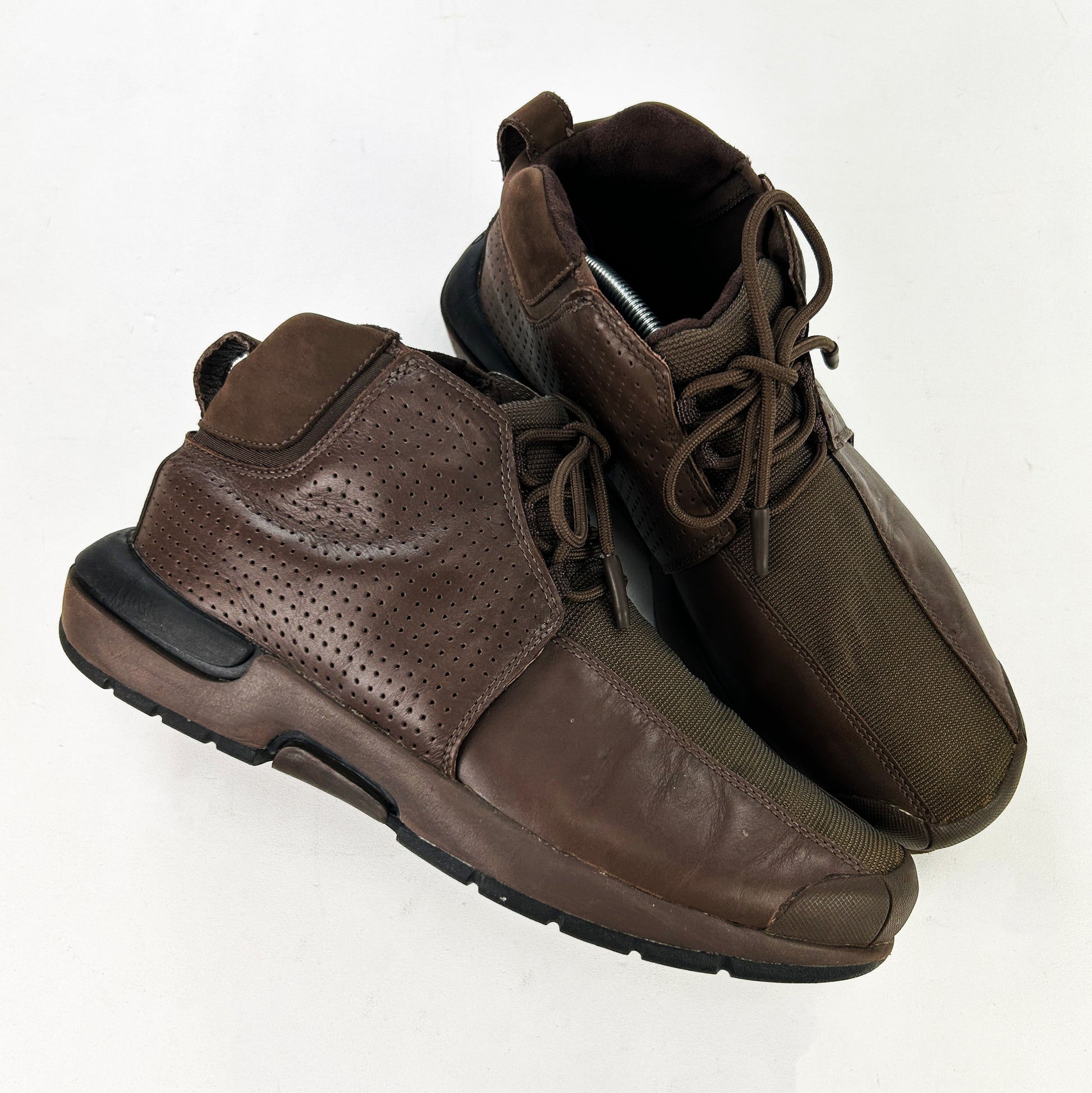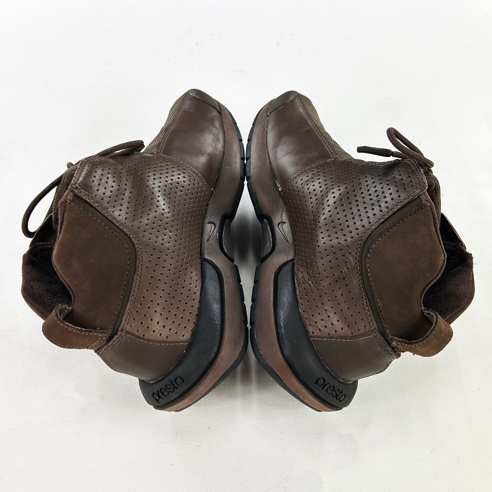This model is one of many, many obscure silhouettes to come out of the Presto lineage in the early 2000s. The 'Ridge', which initially released in a handful of suede colourways and later in some leather ones, is somewhat of a lifestyle oriented Presto Roam with its mid-top construction. One notable detail about the Ridge is that it is one of a handful of Presto models that doesn't feature any kind of 'cage'. We're fairly adamant the Ridge was a Japan only release. The leftfield construction in terms of panelling and volumes really sets this model apart from others out of the same era. This paired with high quality materials and perforated detailing makes for a truly impeccable example of footwear design. In good, wearable condition. Very rare in leather! See policies before purchase.