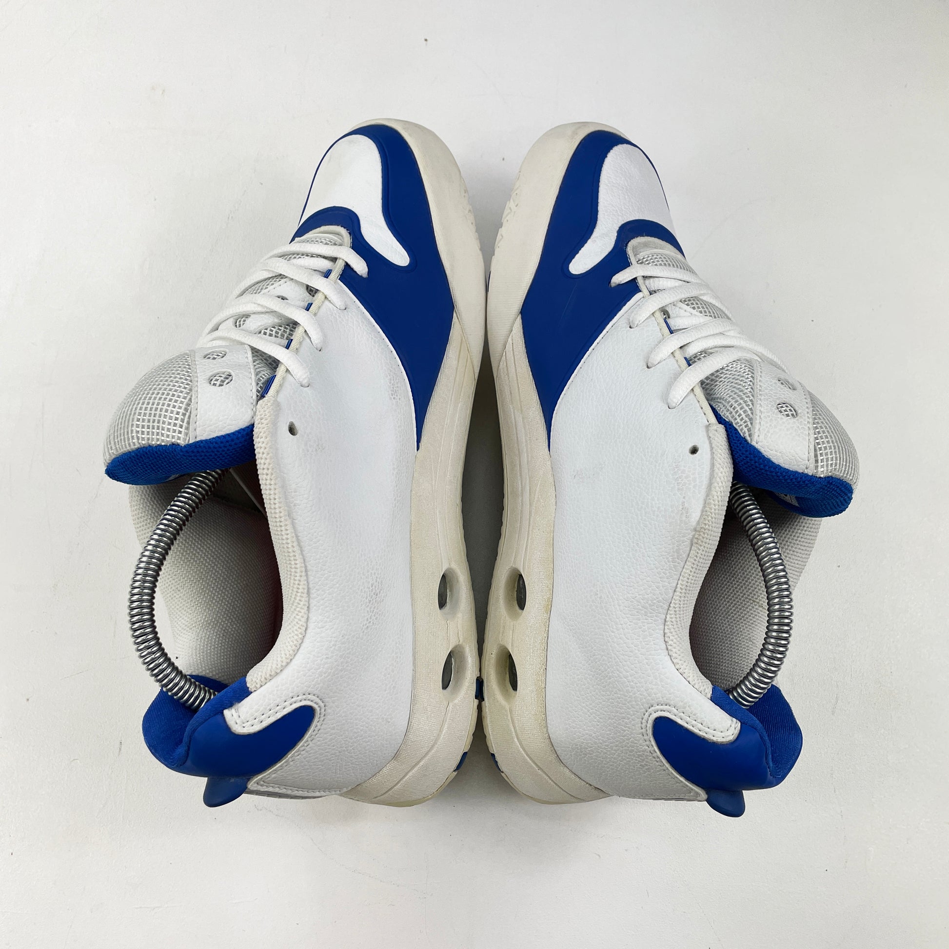 Savier was an Oregon-based skate shoe company founded in 2000 and purchased by Nike in 2001. The president of Savier, Paul Fidrych, presented the idea of the brand to Phil Knight explaining that if Nike wanted to successfully break into the skate industry they should do it through a separate brand and not a sub brand. It’s believed that Savier shaped the blueprint of the Nike SB programme, to this day many view it as the Nike SB beta test. Savier shoes often utilised Nike technology, most notably Nike Air. They’re not models that come up often either, due to the fact that the brand was only around for a handful of years and also the obvious nature of skate shoes being worn until they’re totally destroyed. Seriously rare and very obscure. Very good condition, worn sparingly. Some slight cracking and fading to the paint on the midsoles.