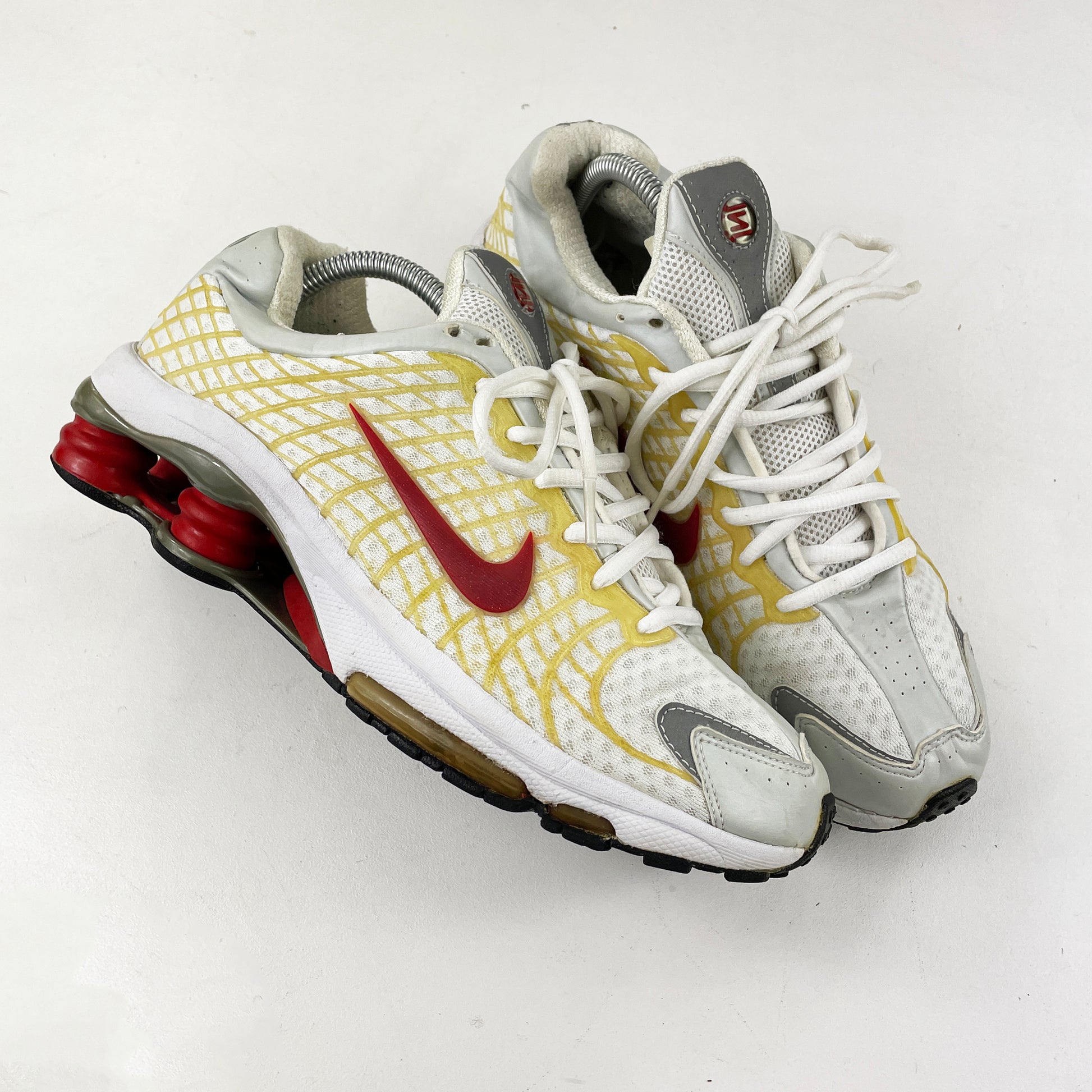 The Shox Ride Plus is a somewhat forgotten treasure of the Shox lineage, it's certainly a silhouette that rarely comes up for grabs. The model features a mesh upper, metallic panelling, a polyurethane netted overlay, forefoot Air technology and of course Shox in the heel. It was also Dr. Gregory House's (Hugh Laurie) shoe of choice in american series Dr House. These look seriously good on foot, and never sit for too long! Good overall condition, worn but looked after.