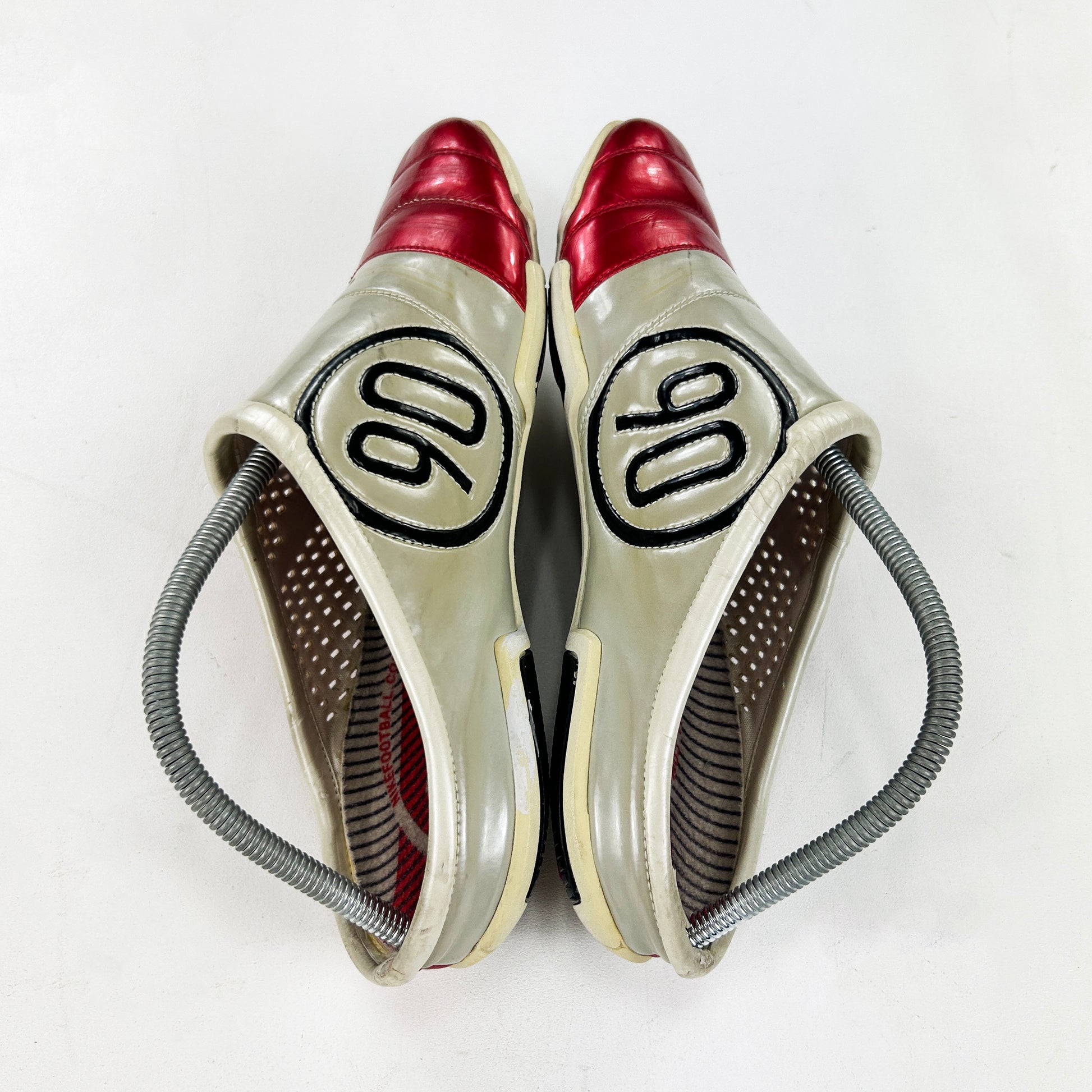 Perhaps one of the rarest mocs Nike has ever done? We've seen more pairs of Izy & Rufus mocs for sale than these! These were a comfortable, lightweight and breathable slip-on designed to be worn pre and post match. They feature a synthetic leather, panelled upper in red and silver with perforated lateral sides and a low profile outsole. Some age related marks, however these remain in very good condition. Rare chance to grab a pair of these. See policies before purchase.