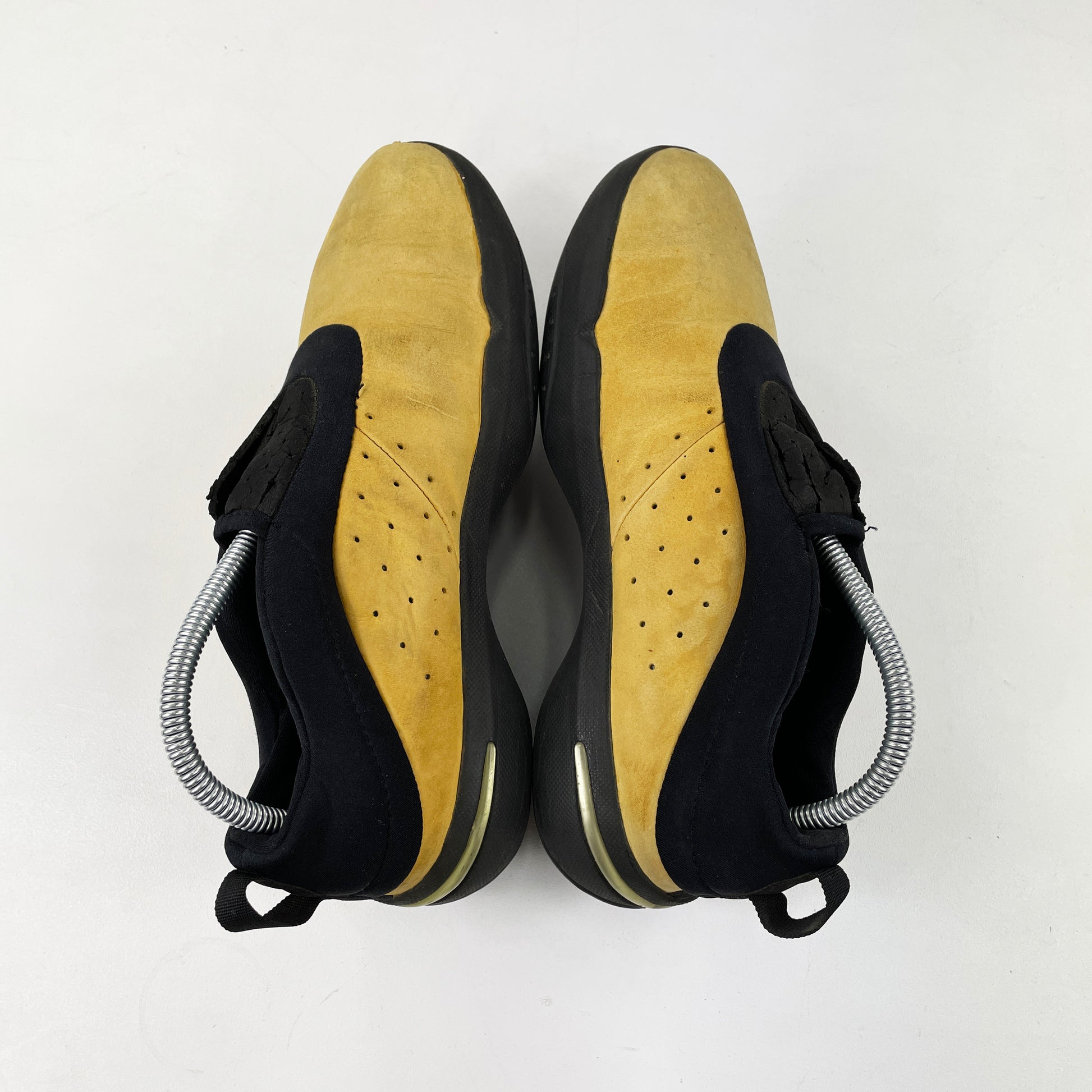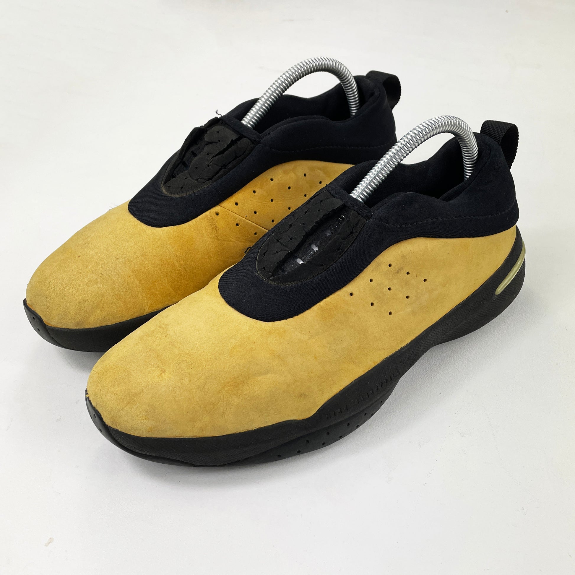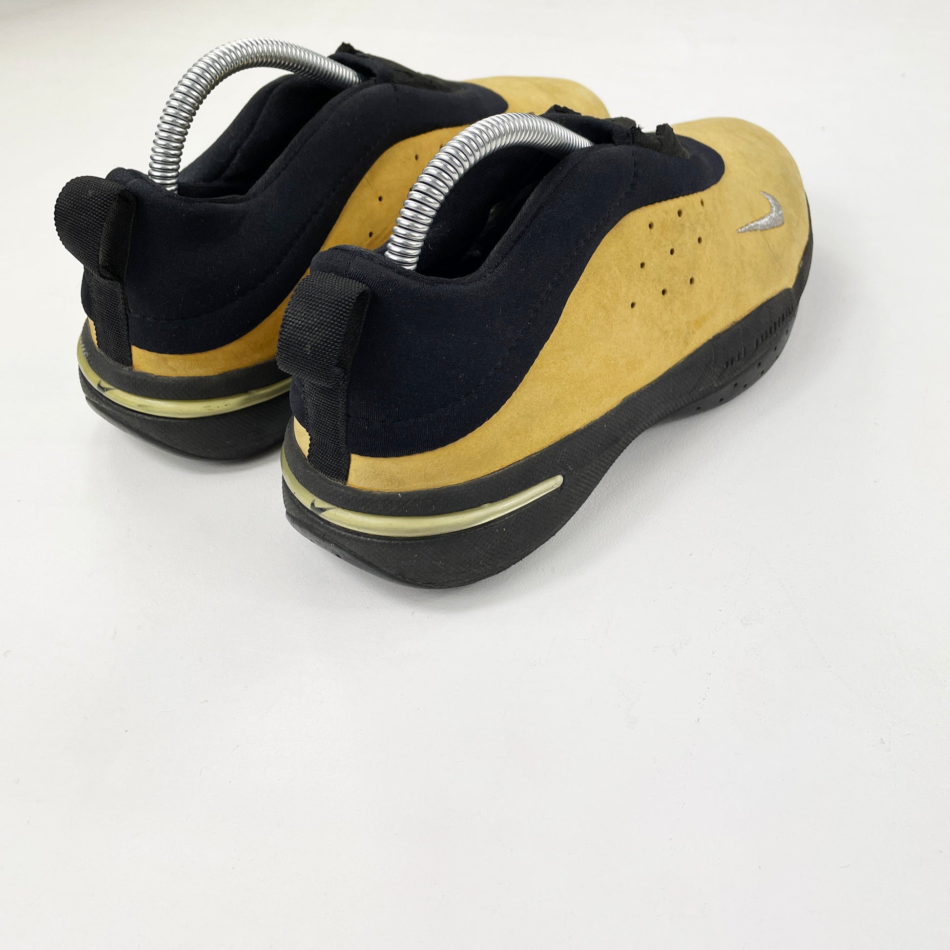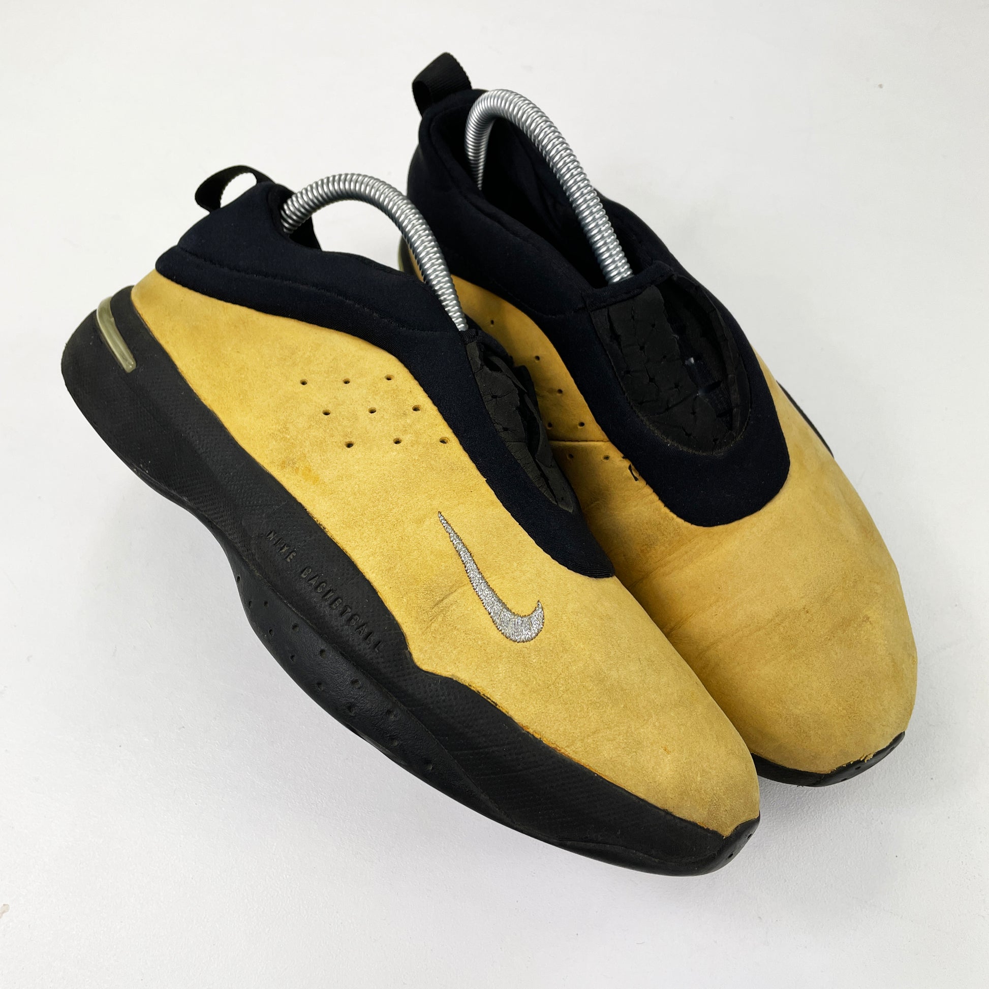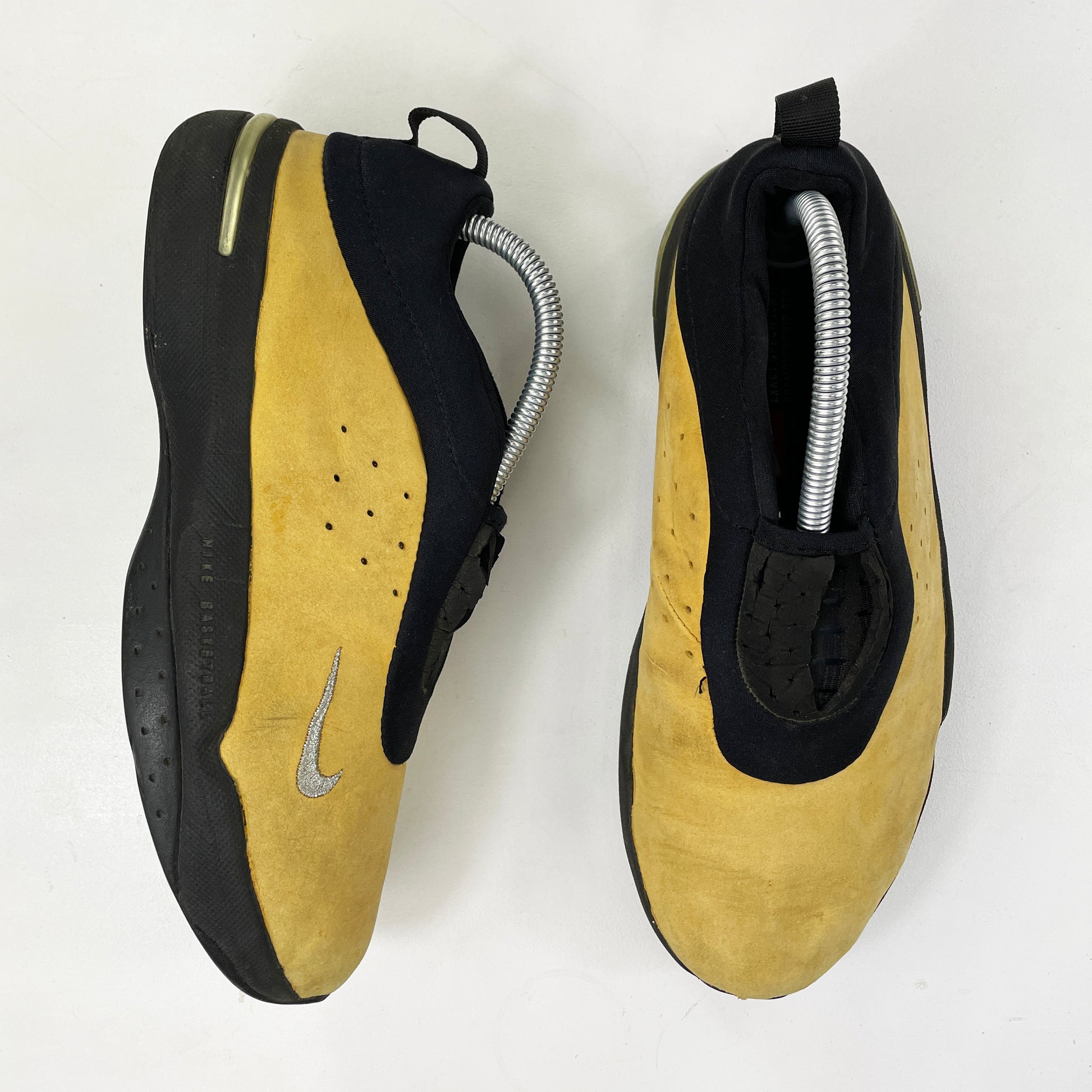 As far as basketball shoes go the Team Supreme is up there with the rarest, weirdest and most obscure, it's also maybe the only Nike shoe to feature would could resemble the Adidas stripes...If you had to interpret the Nike Aqua Sock into a basketball shoe then this would be it, it was designed for players to wear pre and post- game, almost like a kind of basketball approach shoe. Originally, they released in this Buck Tan colourway along with an all-black colourway, both with Metallic Silver swooshes. They feature a one-piece suede upper with perforation details, a neoprene bootie, liner and insole. Good condition, lightly worn, neoprene has cracked. You will not find another pair of these for sale anywhere, that's for sure.
