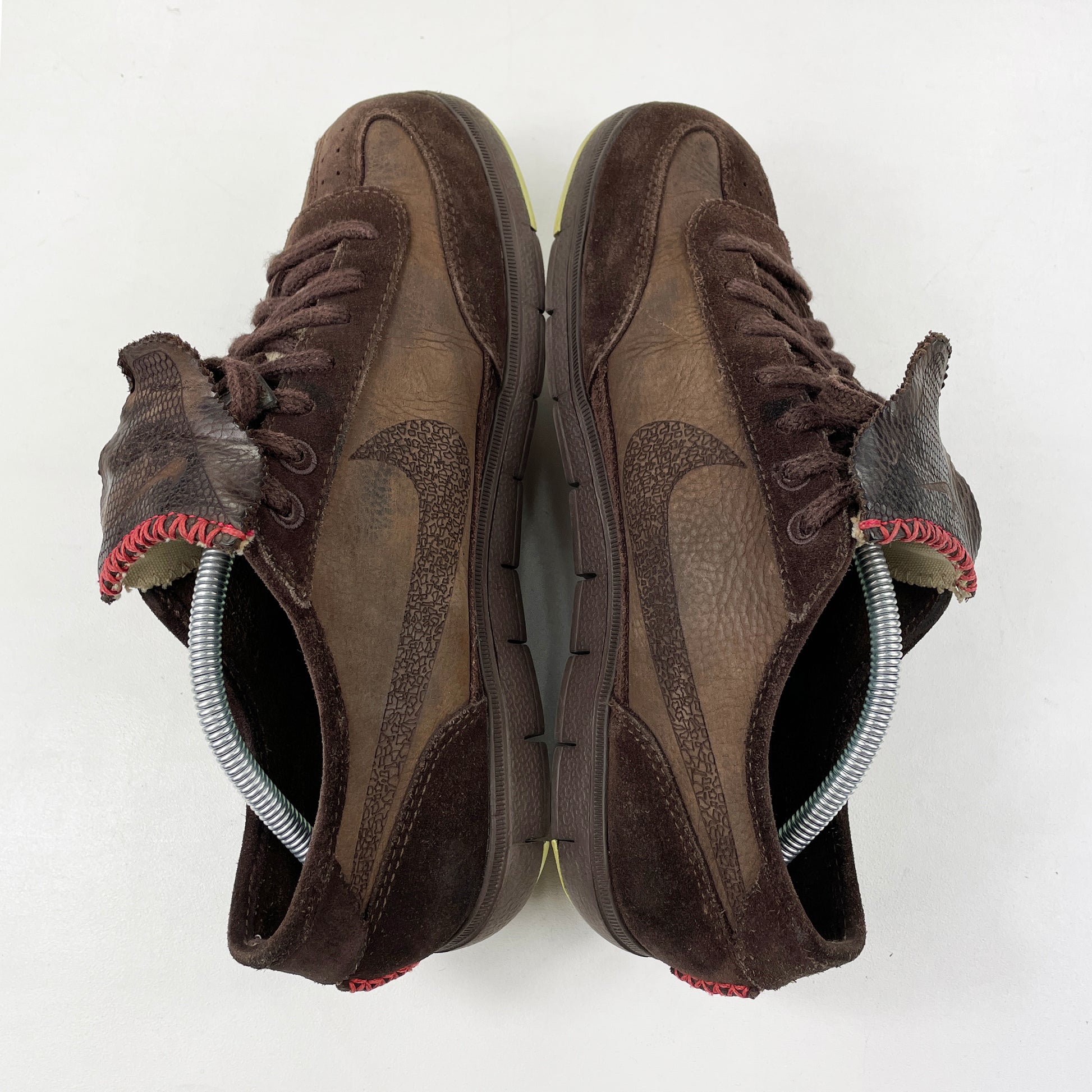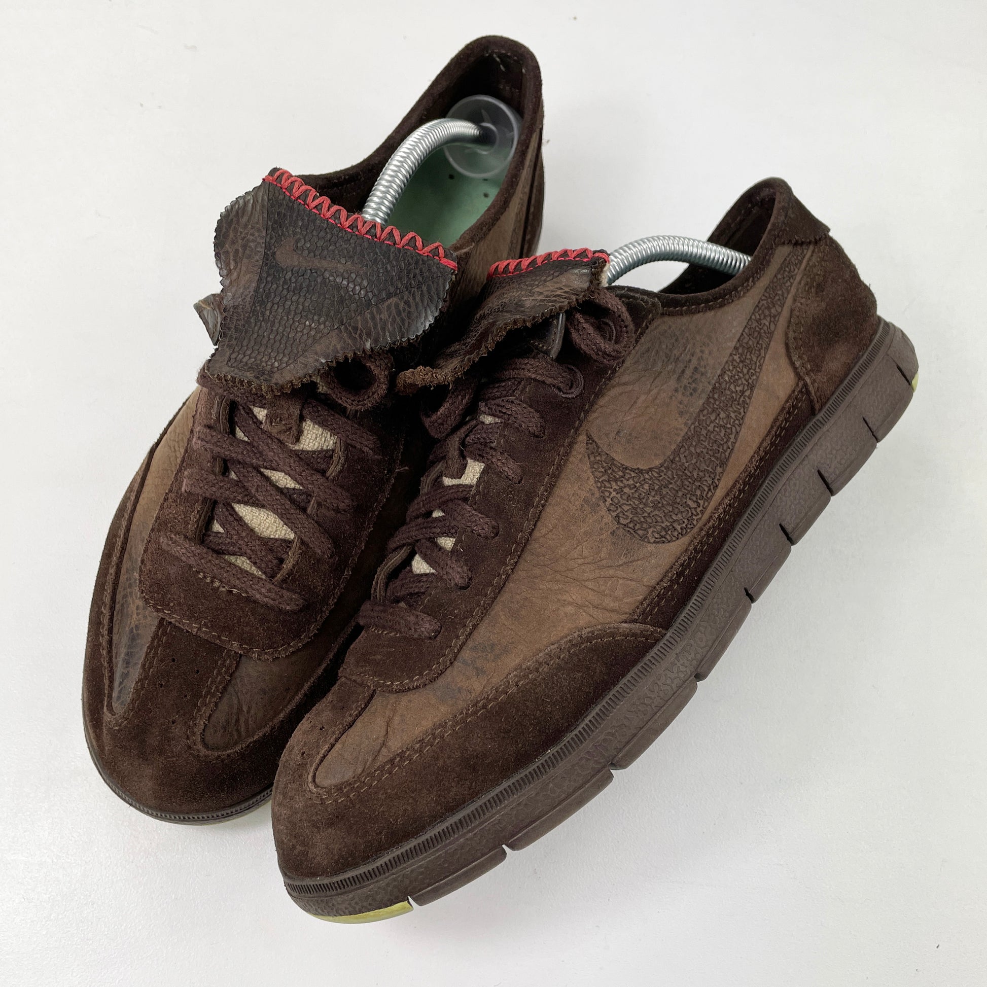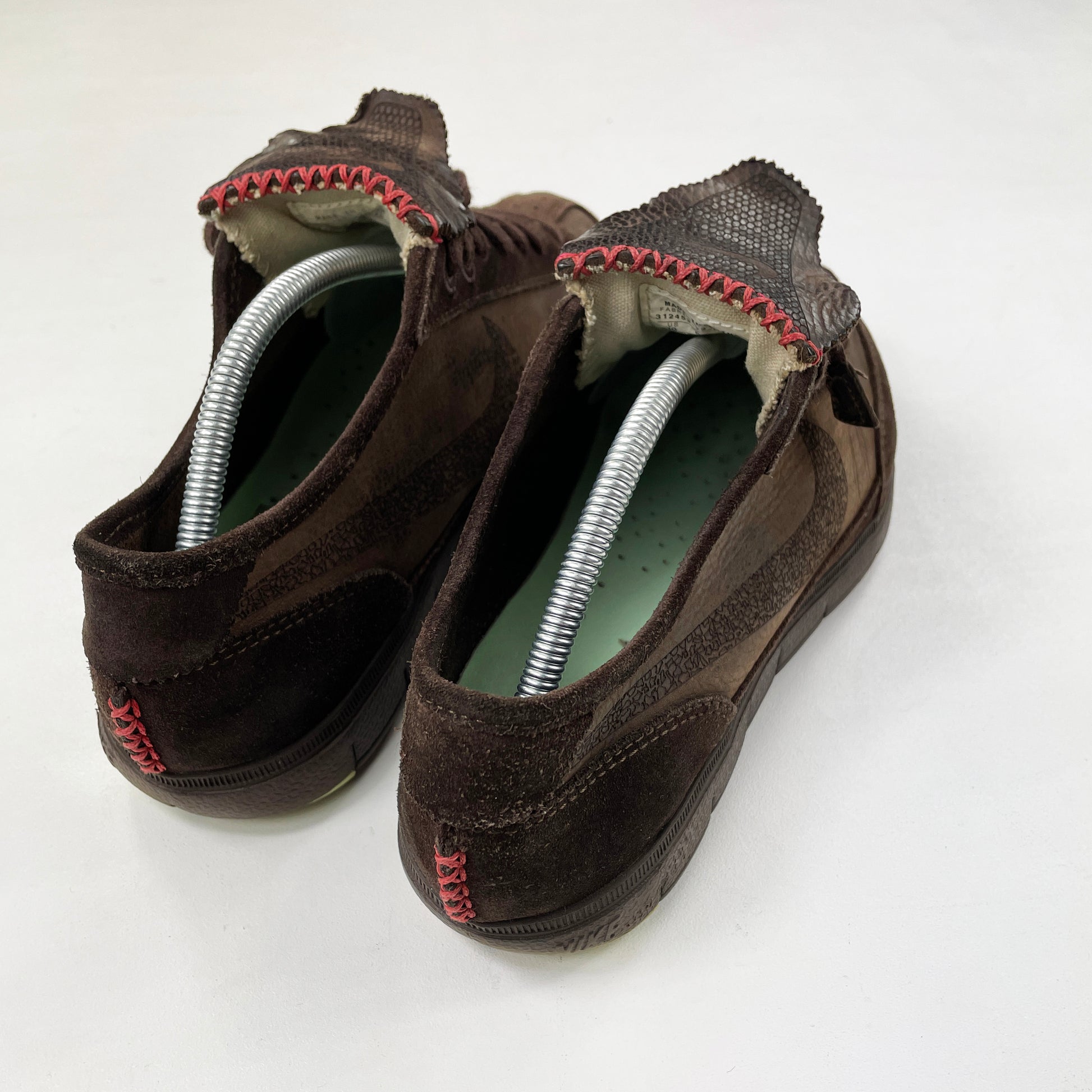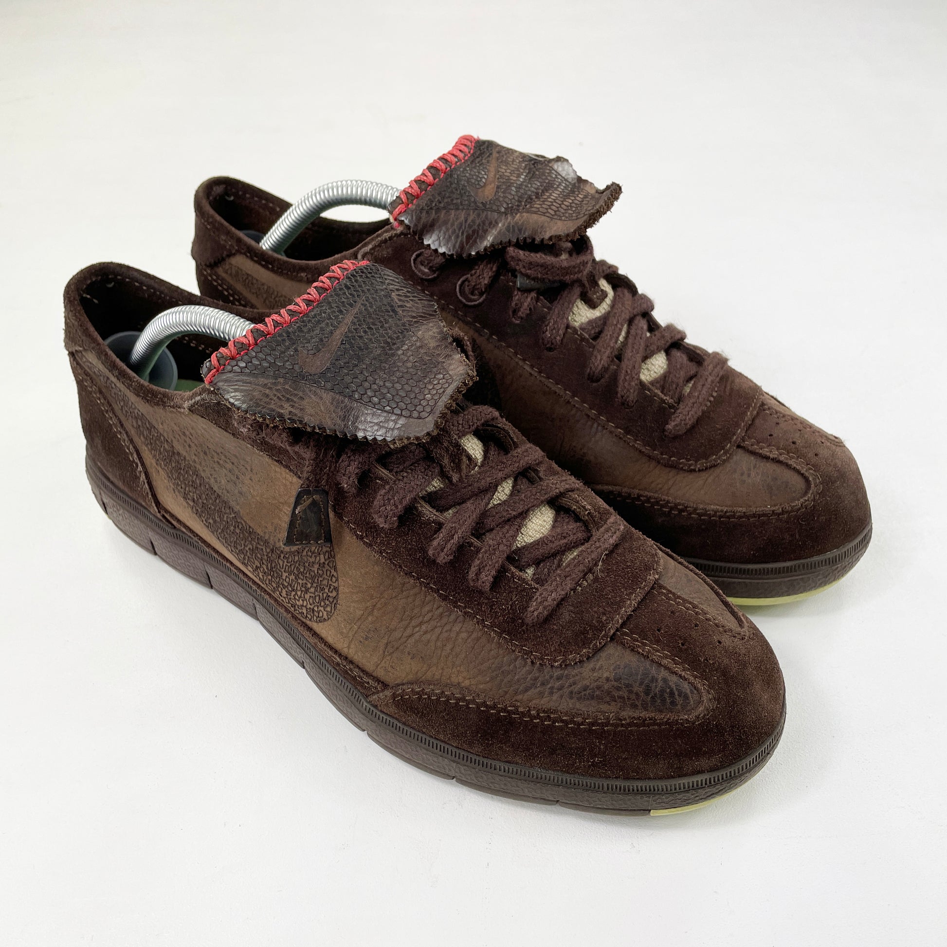 The Nike Tiempo was a football shoe designed for playing on hard surfaces, it’s a bit of a random choice for the Considered line yet it was executed perfectly. This model is one of the lesser seen silhouettes from Nike Considered, they feature a simple brown leather upper with contrast red stitch details, a laser engraved tick and the Tiempo’s signature tongue flap, keeping the laces covered and out of the way. Not a pair that ever comes up for sale, a Considered grail for sure. Good used condition, no notable major flaws.