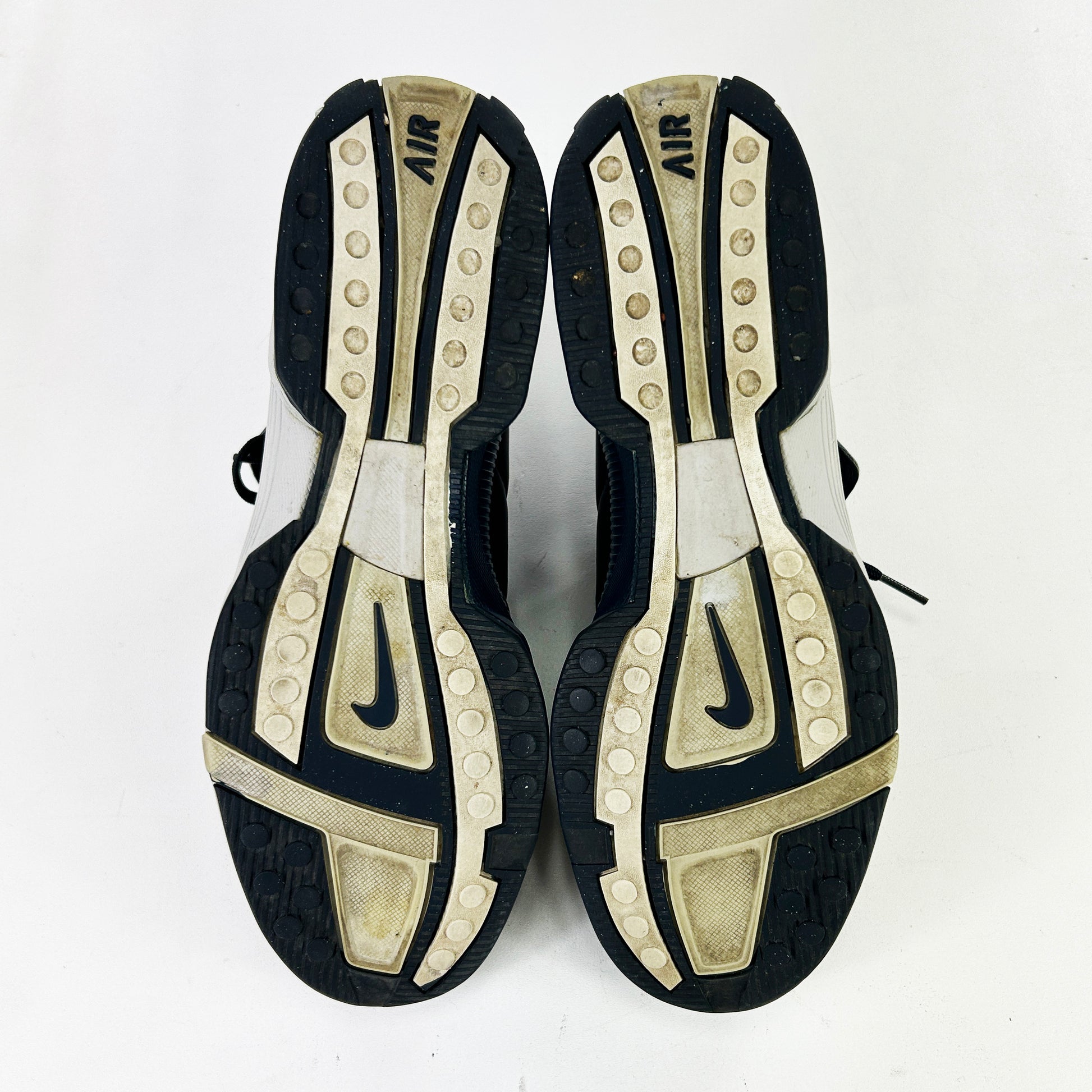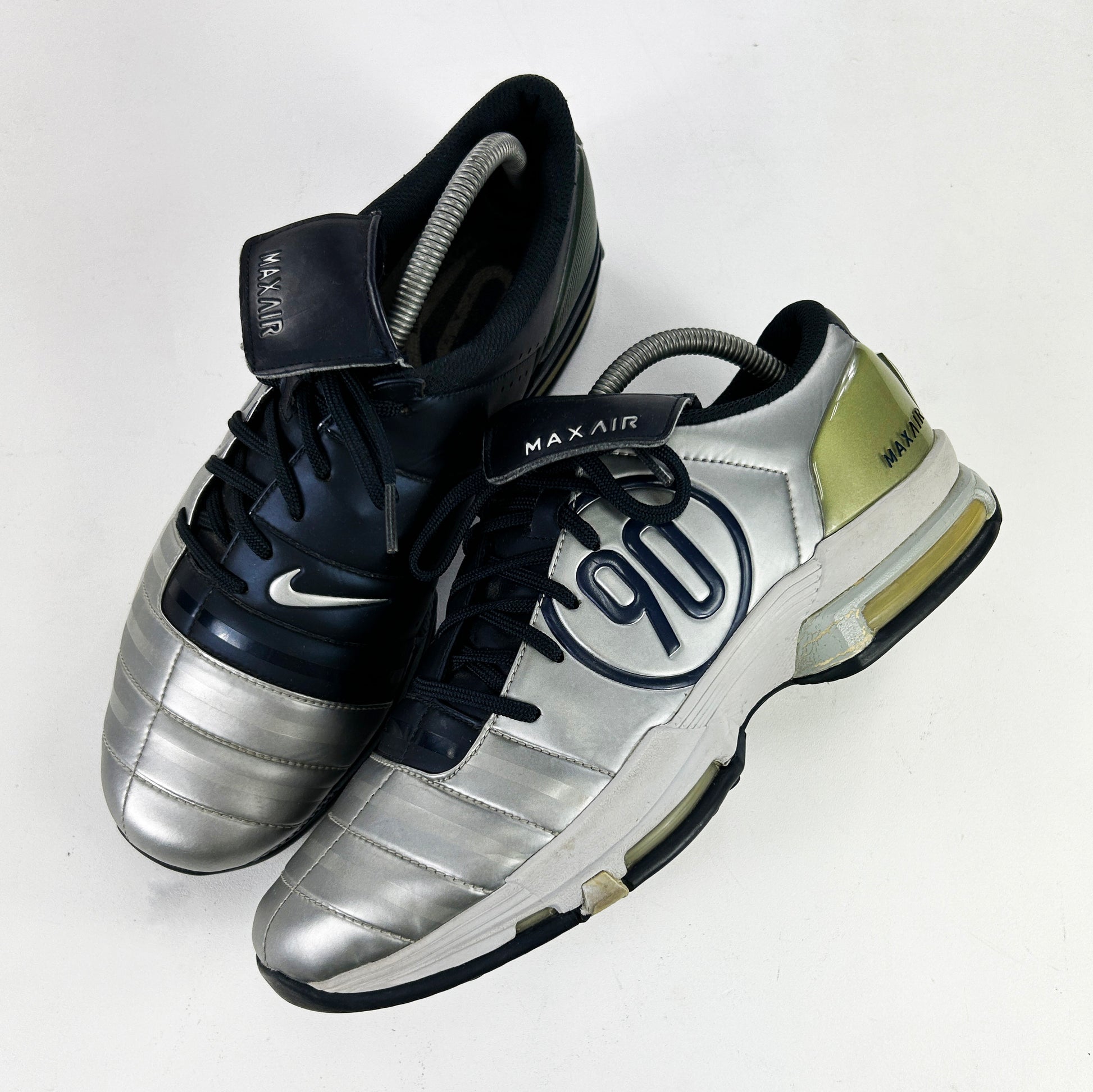 The Nike Total 90 lineage was a legendary line of football shoes that gained immense popularity in the 2000s. These boots were renowned for their striking design and innovative technology, primarily focusing on improving accuracy and power in shooting. The original Total 90 featured distinctive rubber strike zones on the instep, enhancing ball control and swerve. This line was notably worn by many top footballers, including Wayne Rooney and Francesco Totti. While Nike has since discontinued the Total 90 series, its impact on football footwear design and its place in football history remain significant, remembered for its combination of style and performance on the pitch. Nike also released a handful of lifestyle T90 models, like the T90 Moc and this model pictured, the T90 Air Max. More often than not, the T90 Air Max only has heel Air, however this pair offered has forefoot Air too - super rare! Good, vintage condition. See policies before purchase.