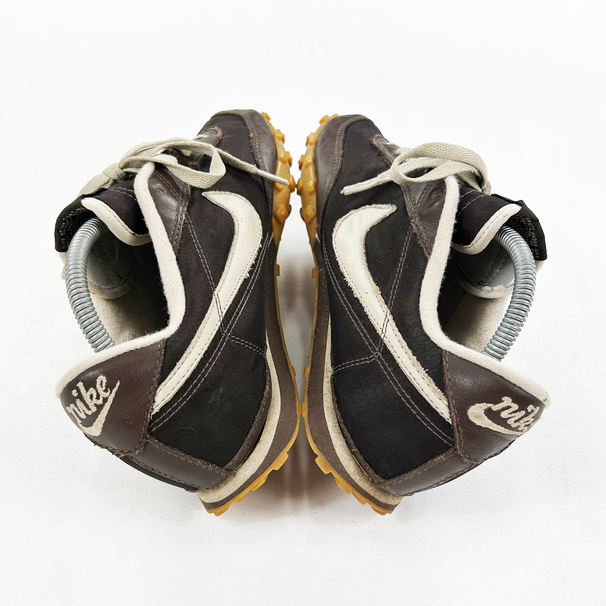 The Waffle Racer is one of Nike’s longest standing models, originally designed by Bill Bowerman in the 1970s it has seen consistent retros throughout the last few decades. Upon release the Waffle Racer was priced between $21.95 and $24.95, the running shoe, originally made in Japan, first released with a nylon upper in a red and white colour scheme. However, the version that quickly became popular with local athletes bore the distinctive yellow and green design of the University of Oregon, while later models also bore the colours of other Californian colleges, such as UCLA. This leather iteration is particularly rare and sought after. Good used condition. See policies before purchase.