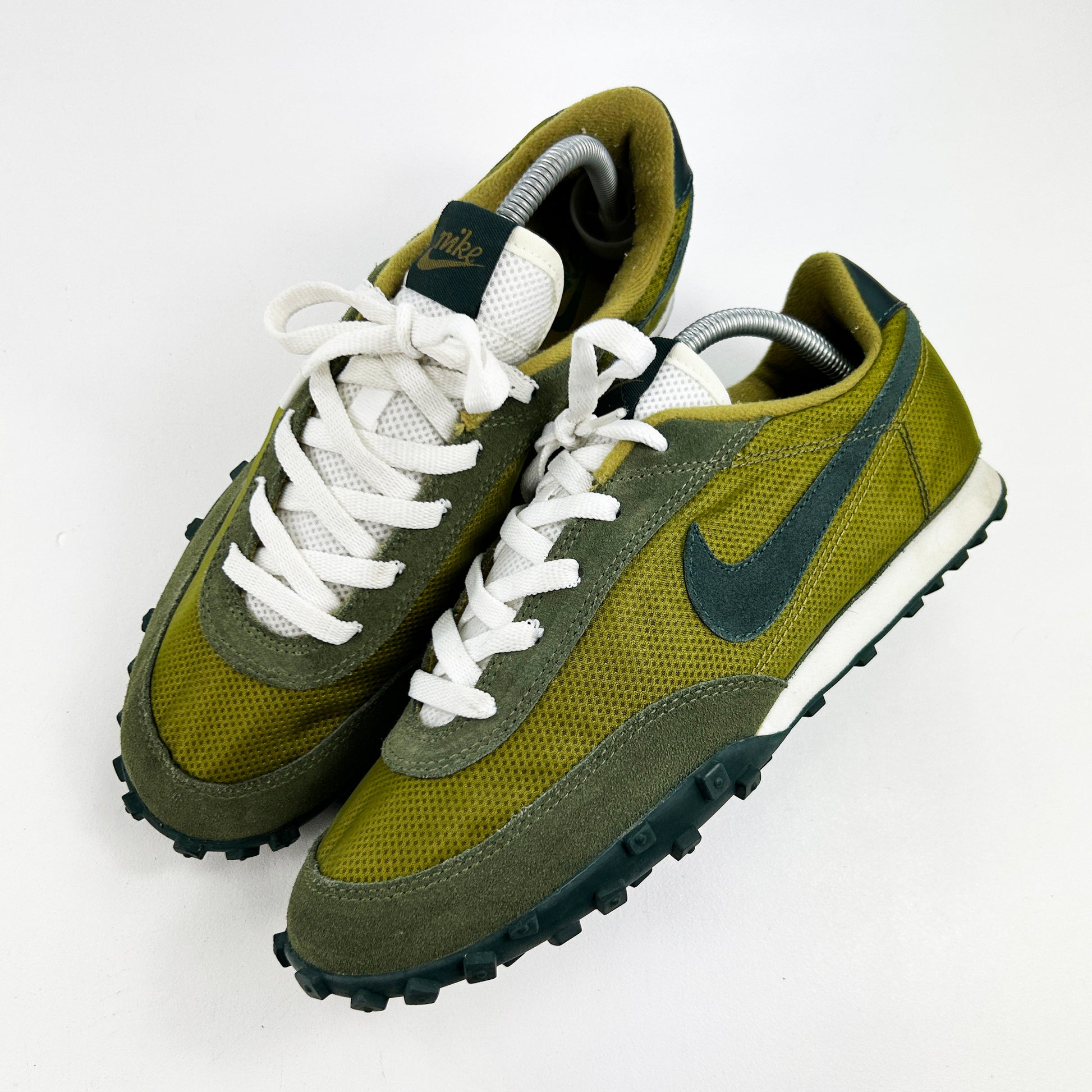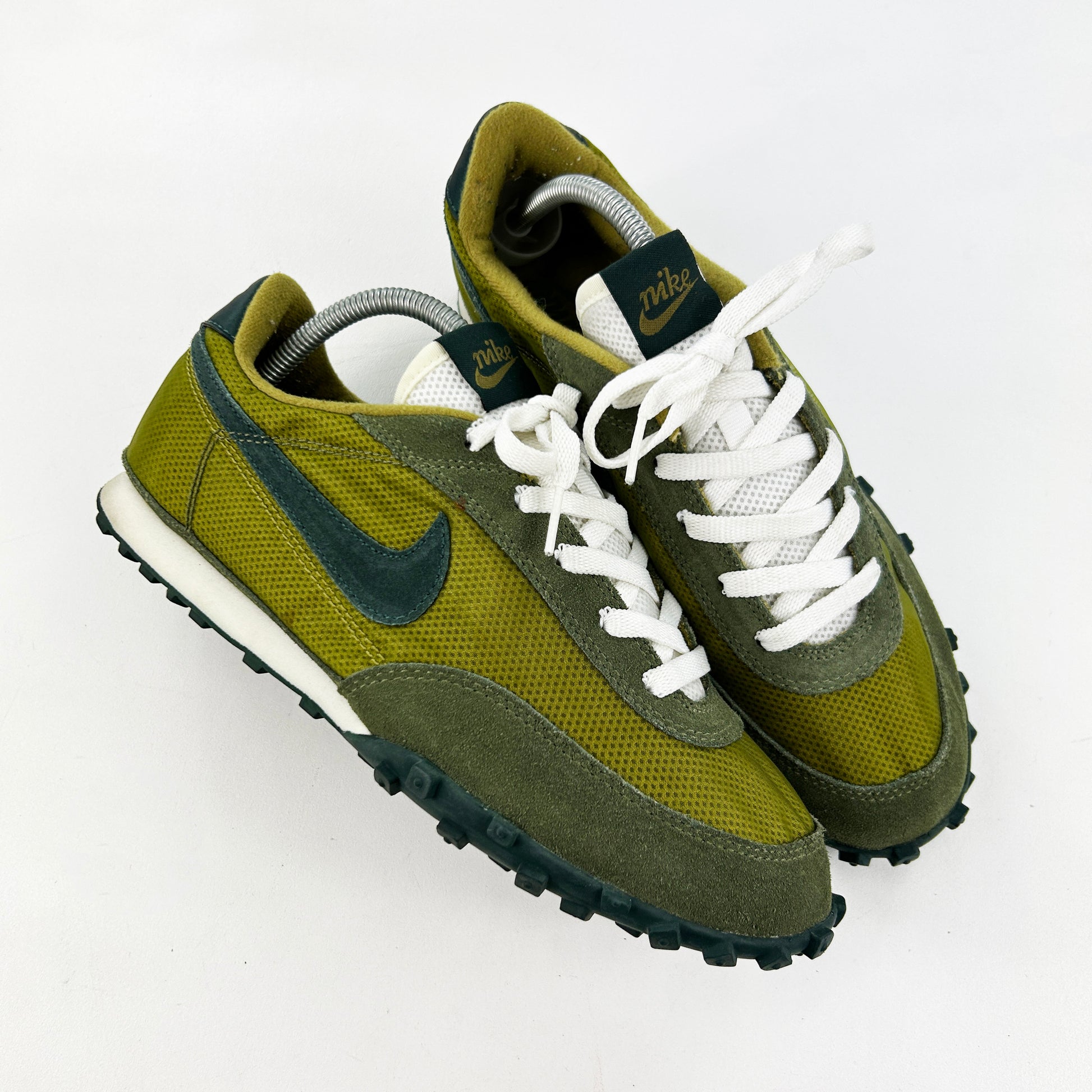 The Waffle Racer is one of Nike’s longest standing models, originally designed by Bill Bowerman in the 1970s it has seen consistent retros throughout the last few decades. Upon release the Waffle Racer was priced between $21.95 and $24.95, the running shoe, originally made in Japan, had a nylon upper and was first released in a red and white colour scheme. However, the version that quickly became popular with local athletes bore the distinctive yellow and green design of the University of Oregon, while later models also bore the colours of other Californian colleges, such as UCLA. Worn once or twice, comes with OG box.