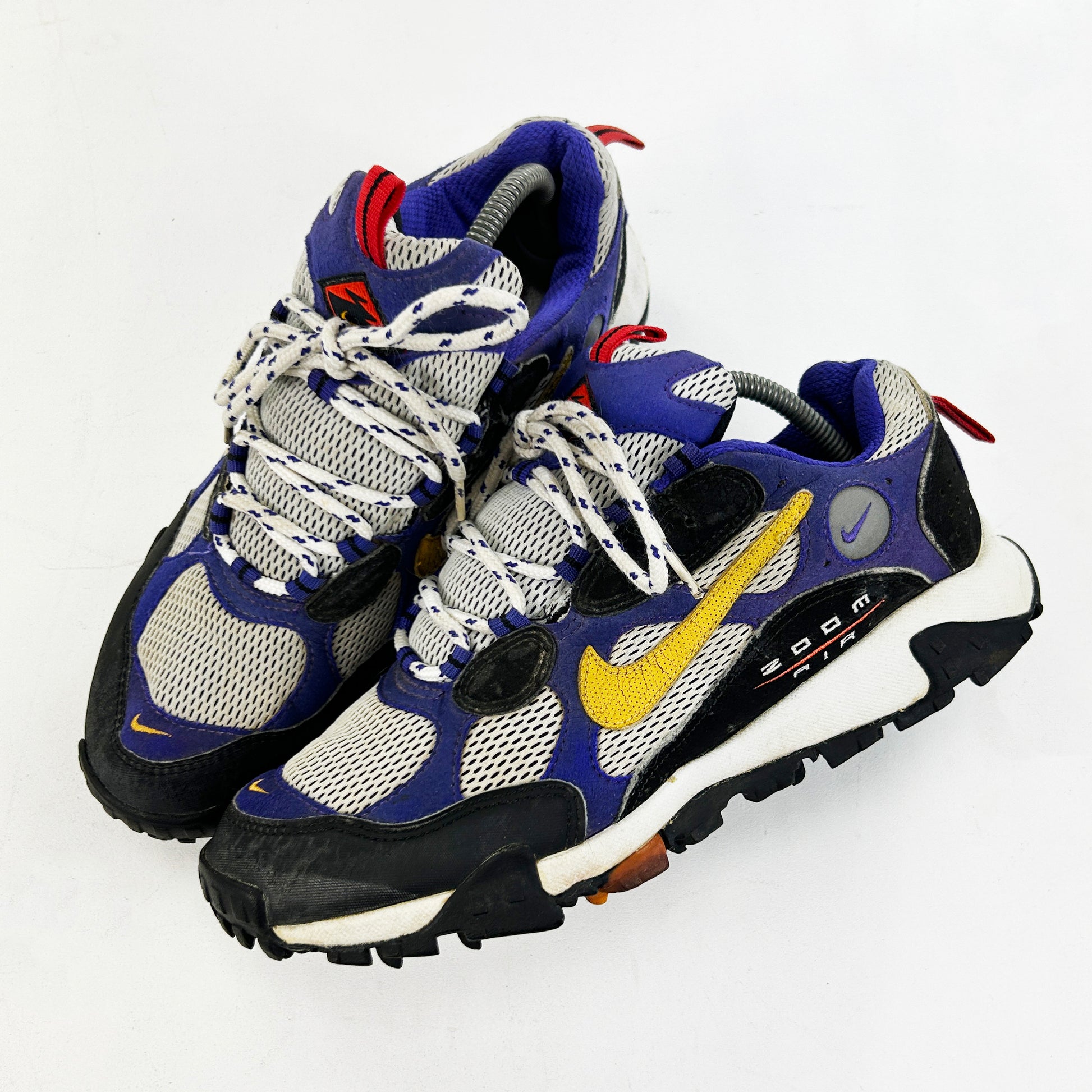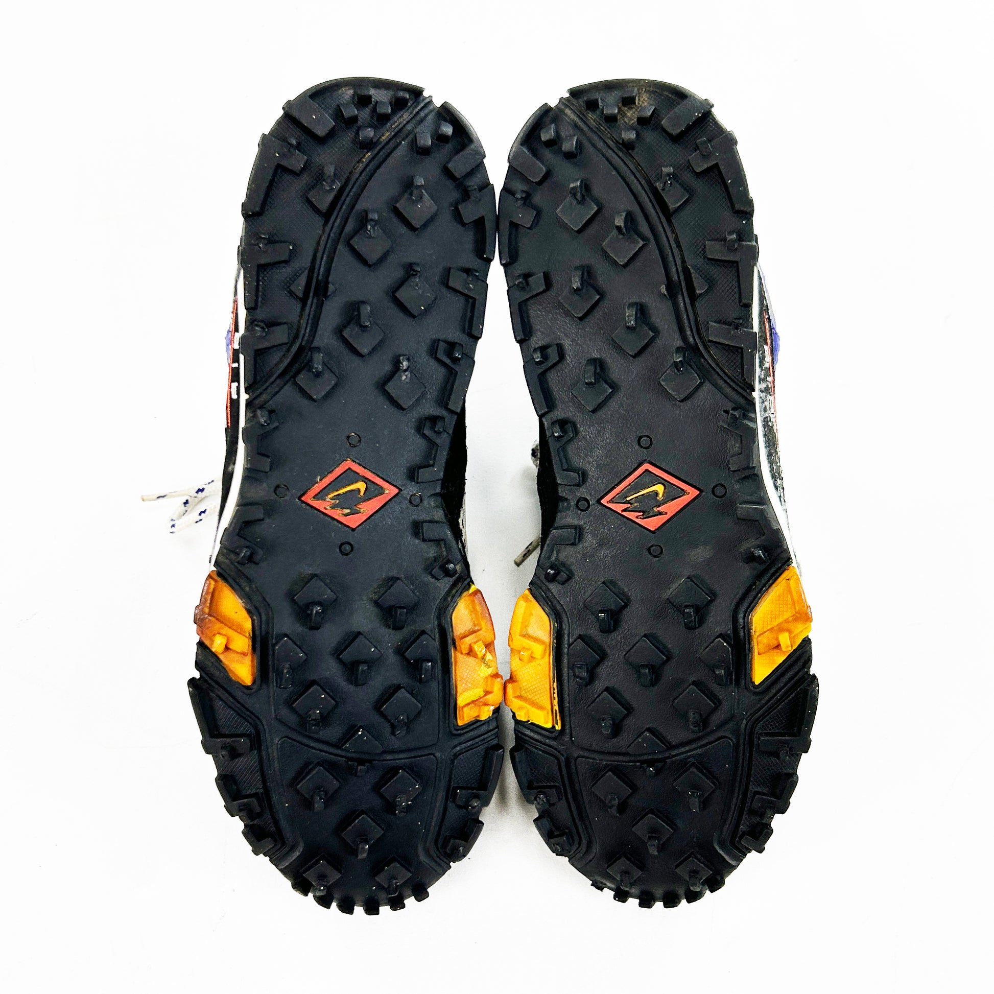 Undeniably one of the most iconic shapes in trail footwear, since its release the Peter Fogg designed Albis has made waves both in the forest and on the streets. The panelling, the mesh, the branding and of course the colour ways are what made this model stand out, everything works harmoniously. When deciding the colours for the Albis, Fogg looked towards what a European consumer would want – he took influence from race cars and mountain bikes of the time. Incredibly iconic colourway here, in a used, vintage condition. See policies before purchase.