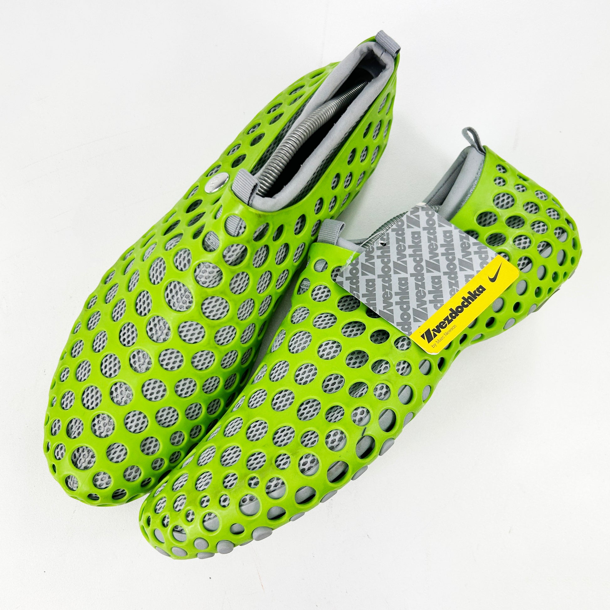 Designed by acclaimed industrial designer @marcnewsonofficial and named after a Russian dog that went to space, the Zvezdochka was a truly revolutionary and innovative piece of footwear design that paved the way for several breakthroughs such as Fly Knit technology and even 3D printing. It was the first Nike model to ever be completely designed on a computer. The customisable, modular design was inspired by Newson’s trip to the Russian Space Institute, he wanted to design a multi-purpose shoe for astronauts. The shoe consists of a rubber outer exo-skeleton, an interlocking insole and a mesh sock liner featuring Zoom Air technology. The Zvezdochka even won the 2005 Chicago Atheneum Good Design Award. Despite being unpopular on release this model is now incredibly hard to come by whilst becoming more sought after. Brand new with tags, however there are some marks from storage.